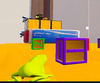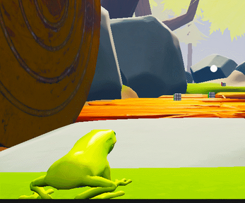Tiny tree frog with a cartoonish style. It will play very similar to Crash Bandicoot or any third-person platformer or adventure game.